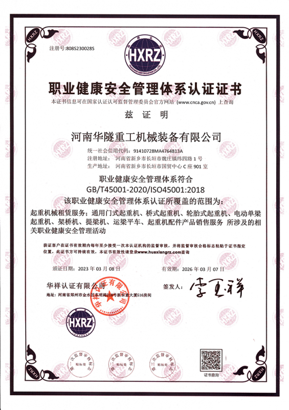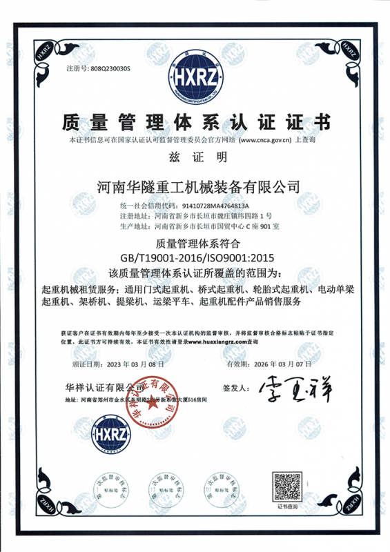 河南華隧重工機械裝備有限公司主要從事通用門式起重機、橋式起重機、電動單梁起重機,輪胎式起重機、架橋機、提梁機、遠梁平車、鋼絲繩電動萌蘆、卷揚機、起重配件制造、銷售:起重機械租賃、安裝和維修,起重設備園收,機械設備維修,鋼結構工程承包,橋梁工程及技術咨淘服務,銷售五金制品、機電設備:建設工程監理,建設工程設計,各類工程建設活動,建筑勞務分包,建筑物折除作業,施工作業,工程管理服務,土石方工程施工,裝如發運?! 」疽淹ㄟ^IS0國際質量、環境、健康與安全三合一標準認證,特種設備制造許可證和特種設備安裝改造維修許可證。擁有完熟的質量管理體系。嚴格的管理制度,強大的生產能力和先進的檢測手段,在保證產品質量的同時,也具備了極強的市場競爭力?! 」緢猿挚萍紕撔聻槔砟?,產品質量為核心,注重信譽,建立了減信可靠、快捷、思速。便利周到的售后服務網絡?! ∥覀儞碛械募夹g專家和技術服務隊伍為客戶提供充善的售前技術支持和全天候的售后服務體系,讓您無后顧之憂,享受一站式的超值服務。  “華隧重工,伴您成功“是華隧重工永遠的宗指,真被的希望與各界朋友攜手并進。共創輝準!